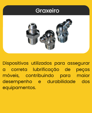 Os Graxeiros facilitam a manutenção preventiva, reduzem o desgaste por atrito e aumentam a vida útil de articulações, mancais e pinos em aplicações industriais e linha pesada.